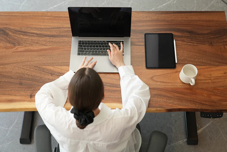 The sturdy dual-motor frame combines natural aesthetics with ergonomic engineering, creating a high-performance workspace designed for both productivity and enjoyment.